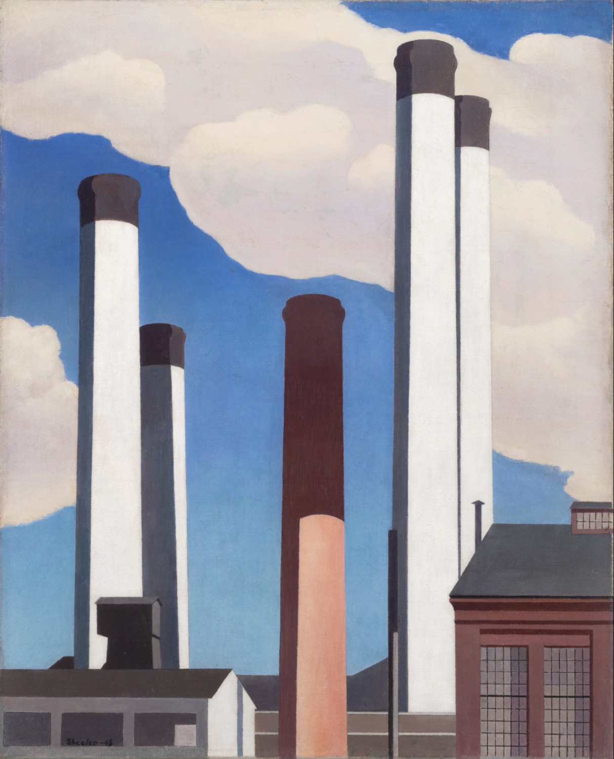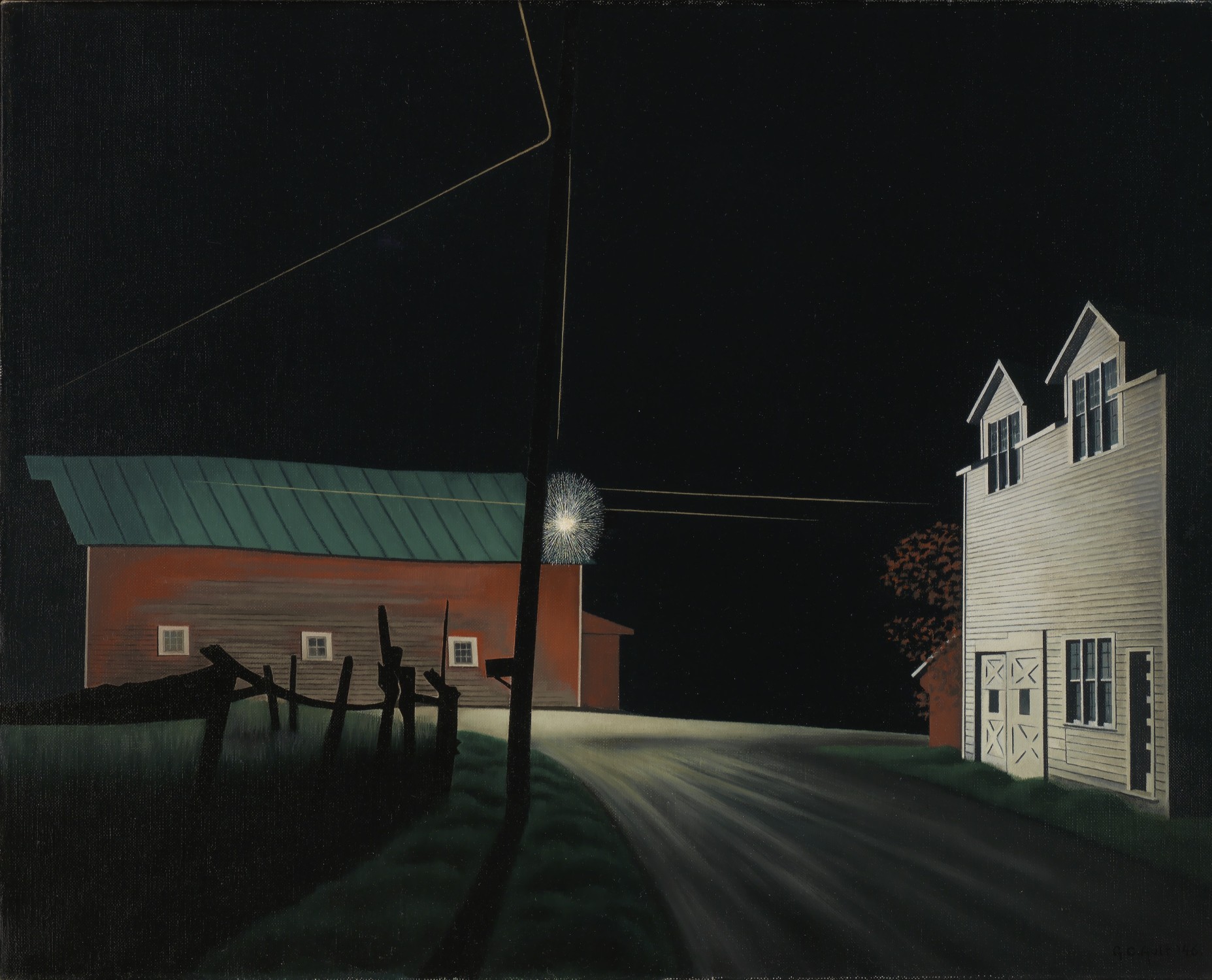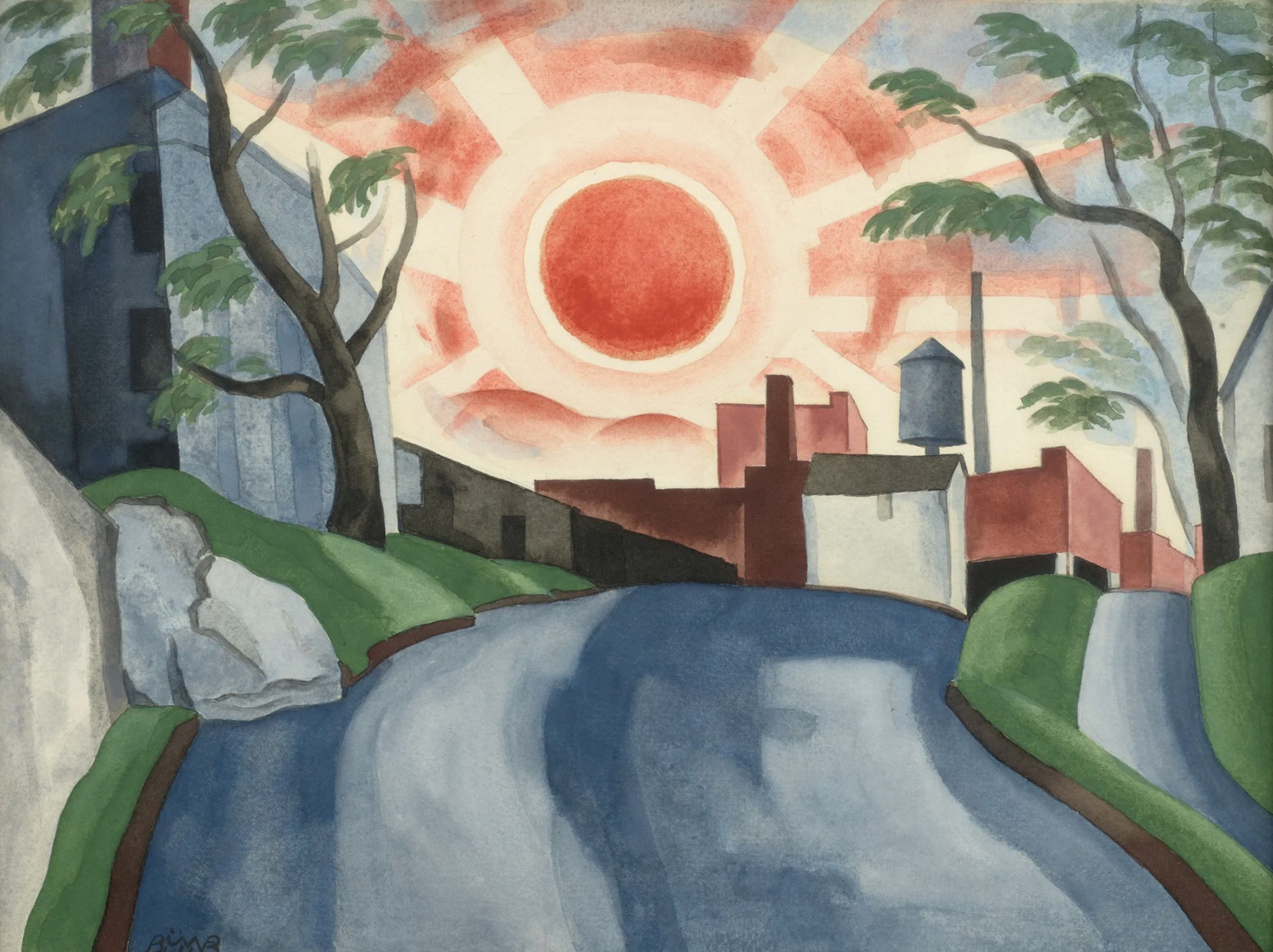 Ault is sometimes connected with Precisionism, an American art movement in which O’Keeffe, Demuth, and Charles Sheeler (American, 1883-1965) were important participants. Precisionists simplified the forms they depicted and tended to focus on industrial or urban subjects. Some, like Demuth in Street of the Monkey Who Fishes, applied Cubist fracturing to their compositions. The flatness of the architectural planes in Ault’s Bright Light at Russell's Corners is typical of Precisionism, but he didn’t share the Precisionist’s attraction to urban and industrial themes.