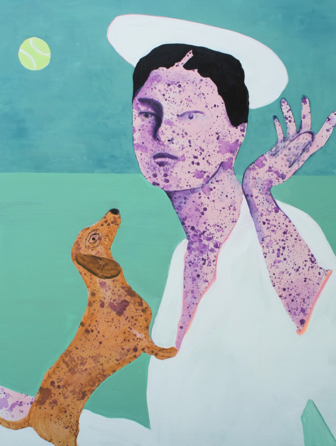 Armstrong creates candy-colored fantasy worlds by combining portraiture with an atmosphere or sensation she perceives from her subject. This atmosphere or emotion interests the artist more than literal reality. Toronto-based Armstrong was discovered by a New York art dealer through her presentation at a small art fair in her home city.