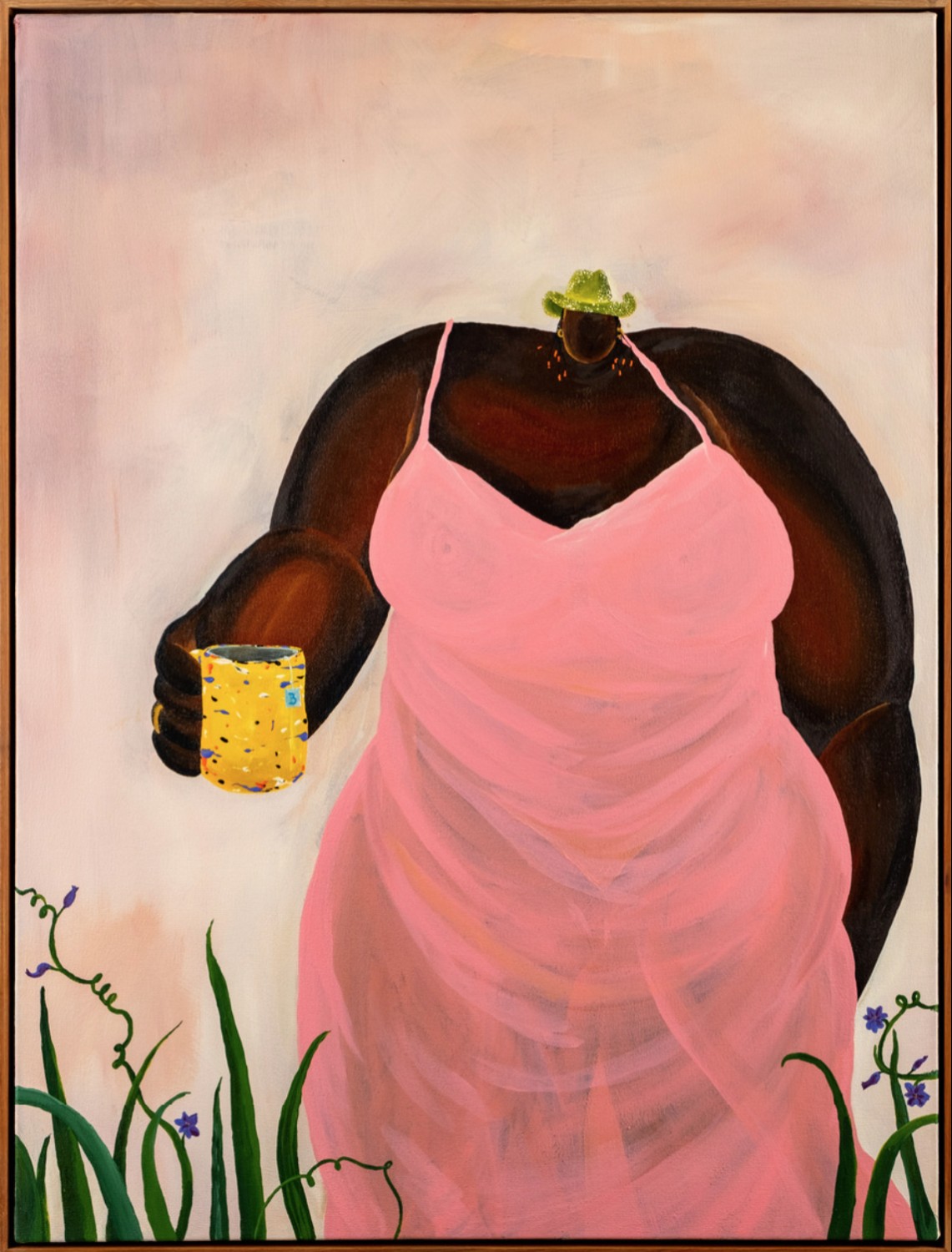 Born in Burundi and raised in Belgium, Simoens uses her art to celebrate Black lives and experiences. Largely self-taught, she has created a distinctive artistic persona through her depiction of large-bodied figures with out-of-scale heads. The artist describes this approach as her "love letter to the black body."
