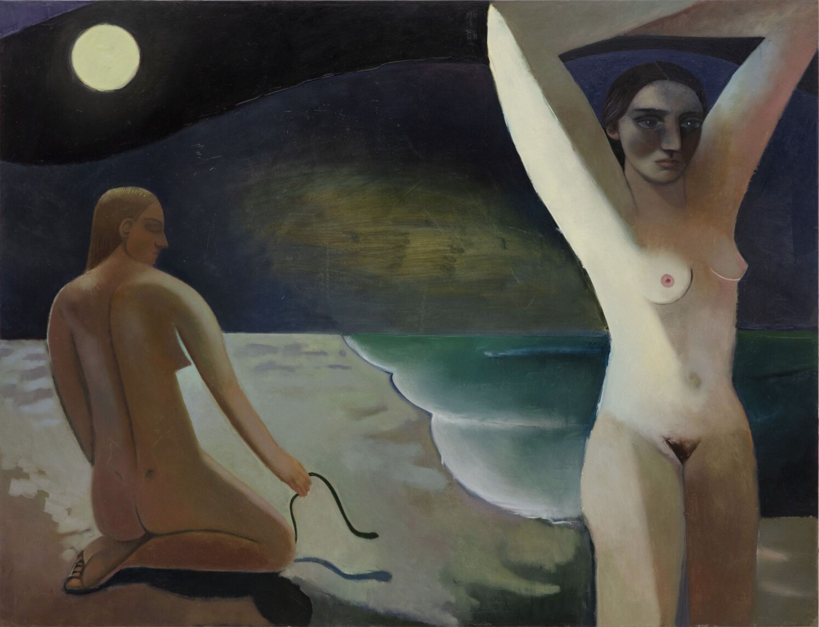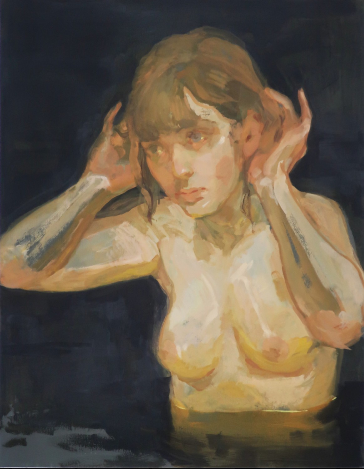 Strongly influenced by masters of Modern art Pablo Picasso and Henri Matisse, Orchard has consciously chosen the female nude as her subject. Her figures engage in familiar activities and poses to encourage viewers to explore the physical and stylistic qualities of the painting first. At the same time, front-facing figures encourage the viewer to consider the internal lives of Orchard's subjects.