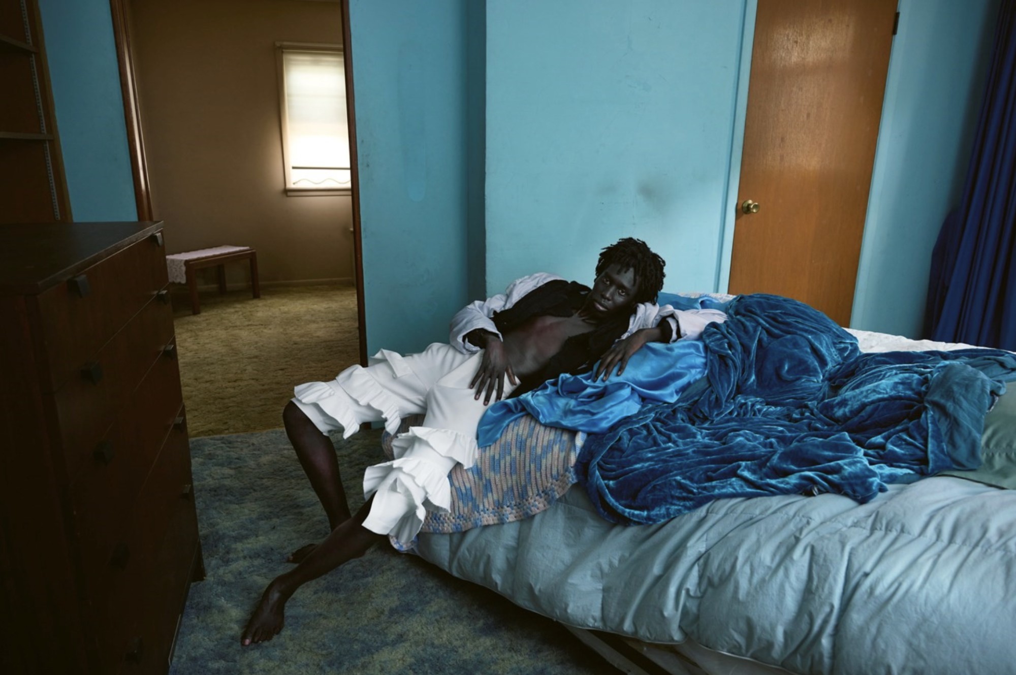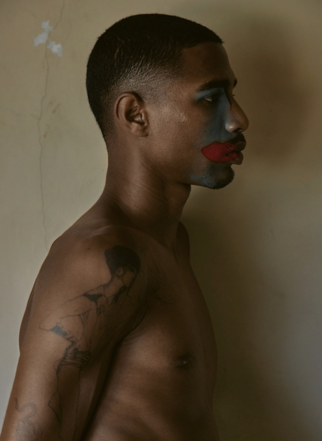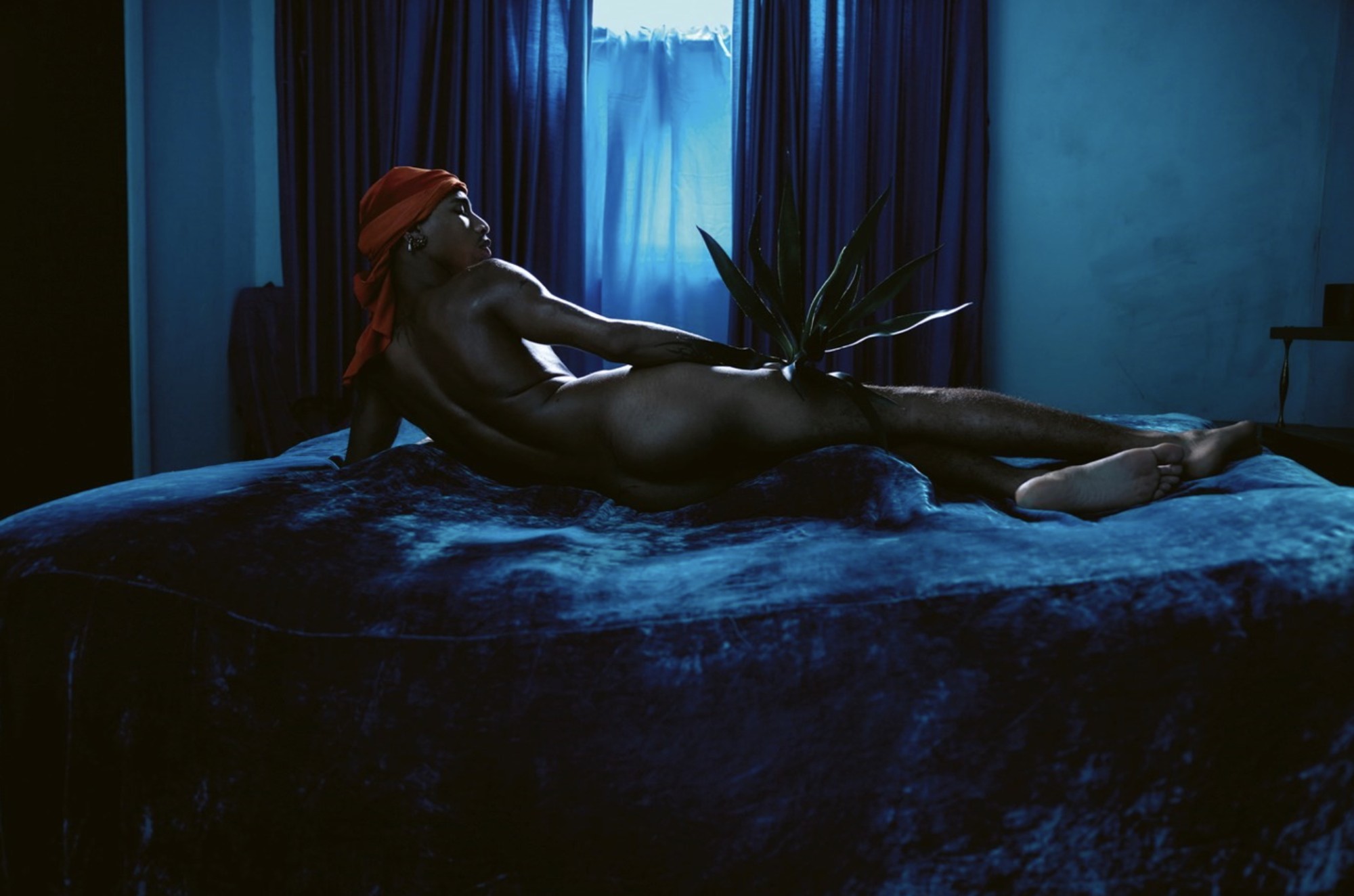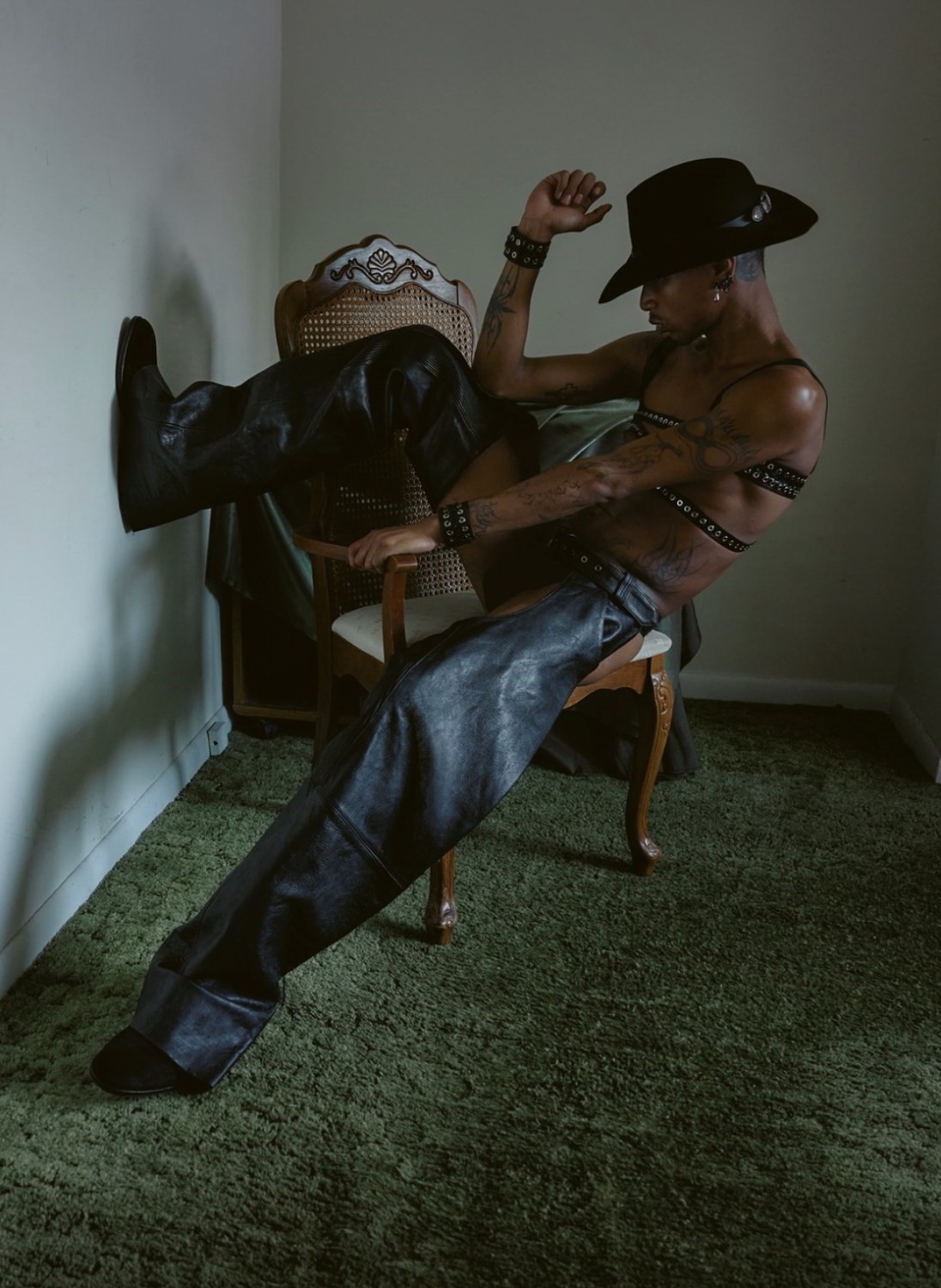 One of the photographers that I was looking at in preparation for the series is John Edmonds. He’s a young photographer that I really respect and he works a lot with the Black male body. I was looking at the sensuality of his figures, and especially in his work Tête d’Homme (2018) where he referenced Man Ray’s Noire et Blanche (1926), but with a Black male side by side with the African mask. I was really taken by the ways in which he portrays the Black male body. I was thinking about another young photographer, too – Quil Lemons, especially when I took the photograph of the figure with the chaps on; it just reminds me of his work. I wanted to feel aligned with the conversations that these photographers are having about the Black male body.