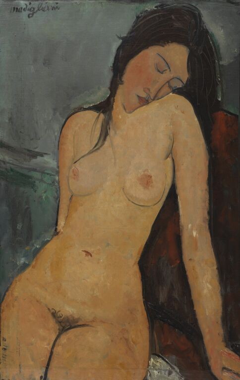 Between 1916 and 1919, Modigliani painted dozens of nudes, which have become some of his best known paintings. These were commissioned by the artist’s friend and art dealer Léopold Zborowsky, who supplied the painter with his materials, hired models, and even gave his apartment as a studio. Unlike the many paintings which had originated in Modigliani’s circle of friends, this was a more “commercial” project, intended for sale, for Zborowsky’s personal collection, or to be included in gallery shows. The first and only solo exhibition of Modigliani’s work was held at the Berthe Weill Gallery in Paris. The exhibition was closed by the police on the first day due to accusations of obscenity, but this was apparently resolved by removing a nude from the gallery’s front window and the show continued. (Gallerist Berthe Weill is the subject of a current exhibition. See below for details.) One of Modigliani’s paintings from this series, Nu couché (Reclining Nude) set an auction record for a work by the artist when it sold for over 170 million dollars in 2015. During his lifetime, Modigliani sold some works but never for much money and what he earned soon disappeared to fund more art and his addictions.