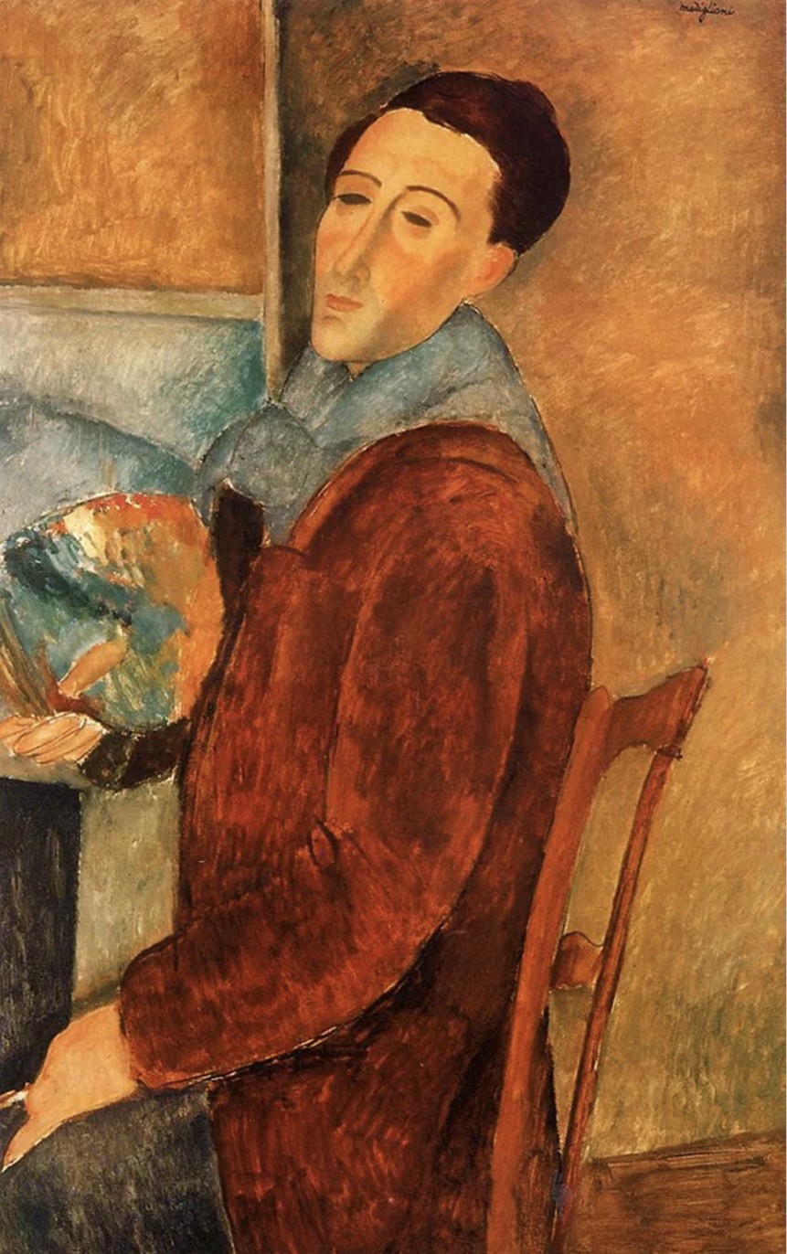 Modigliani was born into a Jewish family of French and Italian origin, once wealthy but financially strained from about the time of the artist’s birth onward. In spite of financial difficulties and her child’s poor health, his mother encouraged Modigliani in his artistic ambitions, helping him to travel to see museums throughout Italy and to find well-known artists with whom to study. His youthful reading of writers Friedrich Nietzsche, Charles Baudelaire, and the Comte de Lautrèamont and his studies of Renaissance and Modern Italian art paved the way for his later career. Unfortunately, he acquired some less helpful things in this period, including addictions to alcohol and drugs and the tuberculosis which would lead to his death at the age of 35.