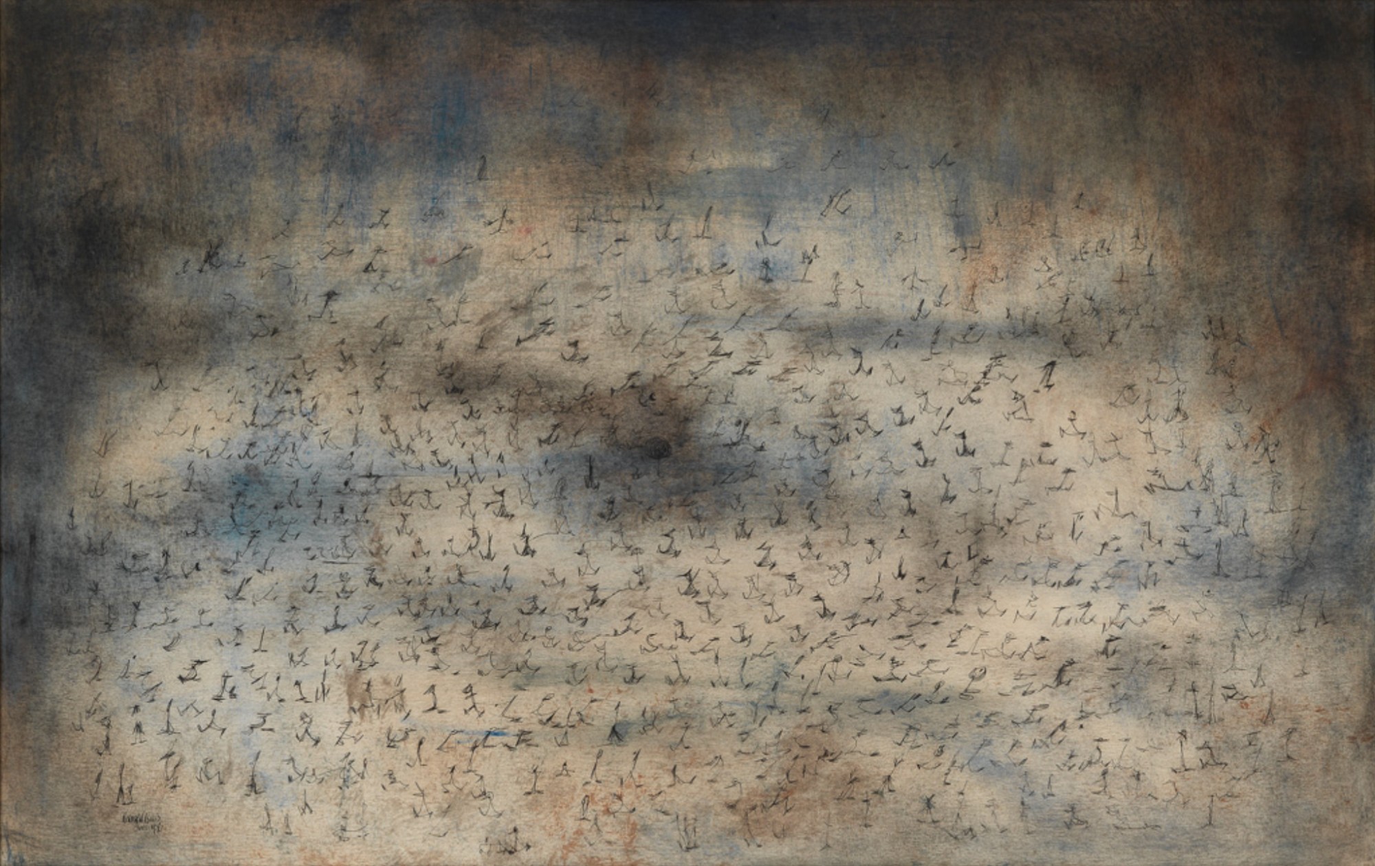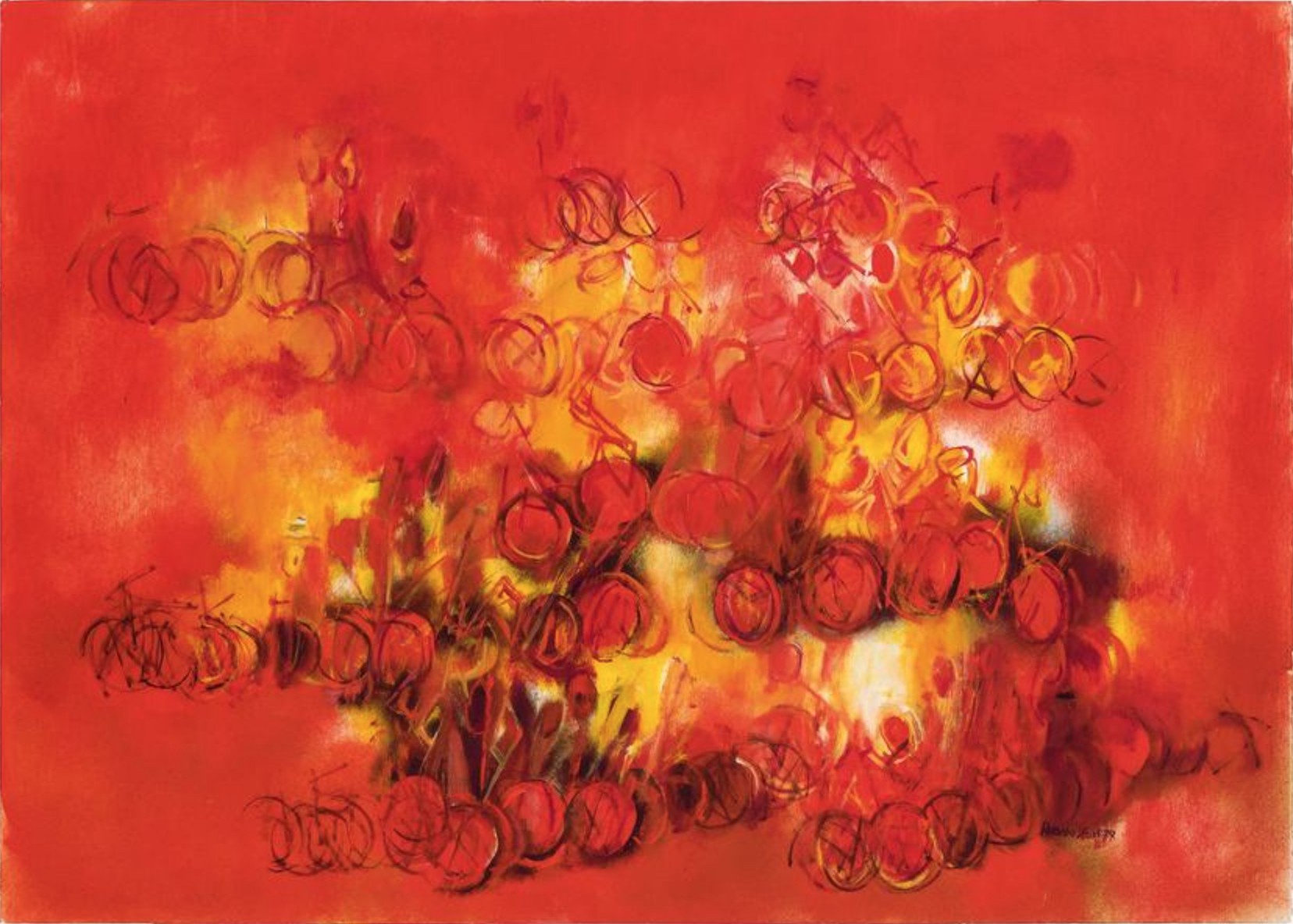 In the last 25 years, Norman Lewis’ work has begun to receive some of the attention and scholarship that it deserves. The artist’s work on paper is the subject of a current exhibition at the Michael Rosenfeld Gallery, New York. “Norman Lewis: Give Me Wings To Fly” (September 7 – November 3, 2023) covers the whole of the artist’s career. Some of the works shared here are included in this exhibition. For Lewis, his work on paper was equal in importance to his work on canvas or board. Many of the same motifs and techniques appear in both categories, including figure-like glyphs, orbs and circles, and especially, atmospheric color.