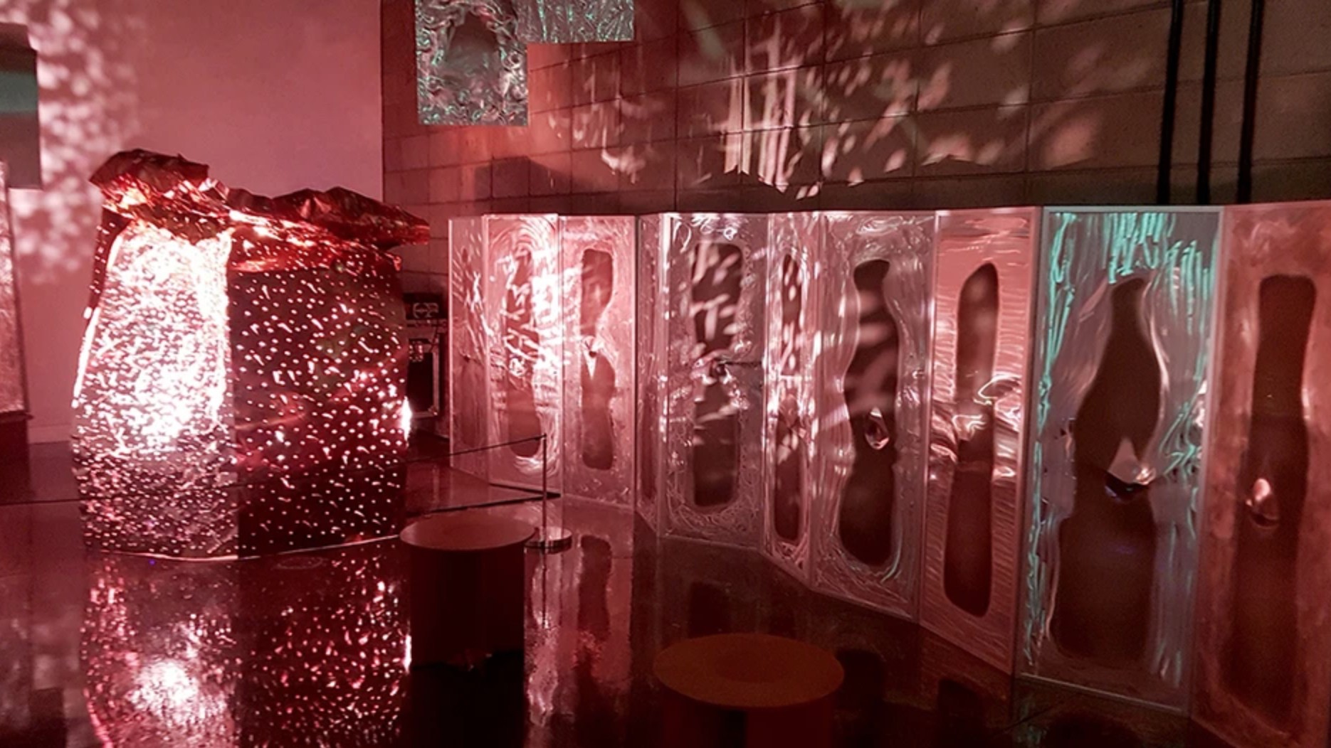 The artist’s belief that his visual art will communicate the sounds that created it depends on the concept of synesthesia. A perceptual phenomenon in which a stimulus to one sense is experienced by a different sense, synesthesia was first medically documented in 1812. Any sense or perceptual pathway can be engaged; which ones are activated vary among individuals. As in his percussion performances, Choi's exhibitions often incorporate sound and light creating spectacular reflections and color interactions, as in the installation view included in the slide show. Whether Choi’s art provokes a synesthetic experiences in a viewer, the artist's materials, textures, and colors provides plenty of visual stimulation.