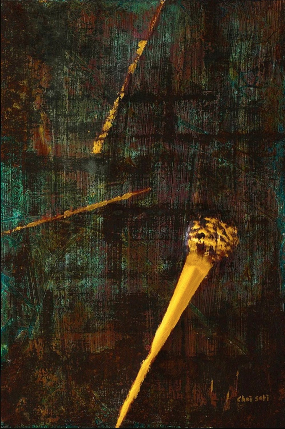 South Korean visual artist Sori Choi began his creative career as a percussionist. For a time he was a member of the Korean metal band Baekdoosan, but left to pursue a career as a solo artist. As a musician, Choi is known for his experimental percussion performances into which he incorporates lighting, water, fire, and even the creation of visual artworks. Over a period of 30 years, he has released 10 albums of his percussion compositions and performed worldwide in over 200 cities. You can see videos of Choi’s dynamic performances here: youtu.be/gcFcYh0FJ9Y and here: youtu.be/hUg0GgDU_6U. (Please note that clicking a link does not open a new window; click the "go back" arrow to return to the Viewing Room.)