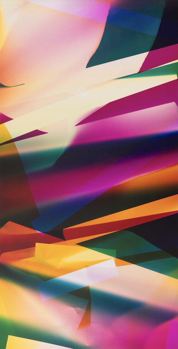In his next group of projects, beginning around 2004, Beshty began to explore the photogram process, in which the artist exposes photographic paper to light without using a camera. The process was pioneered by the 20th century American artist Man Ray who laid various objects on light sensitive paper to make his Rayograms. Beshty took a different approach by folding or bending large sheets of photographic paper and exposing them to light. In the Three Color Curl series (2008-2014), after curling the paper, sometimes repeatedly, the artist exposed the paper to three colors of light—cyan, magenta, and yellow as the prints were processed. The interaction of the colored light, the curling of the paper, and the processing itself led to different patterns of color in the prints. The results are visually abstract but Beshty prefers to call these works “concrete” and “literal” because the viewer sees both the image and the source of the image at the same time.